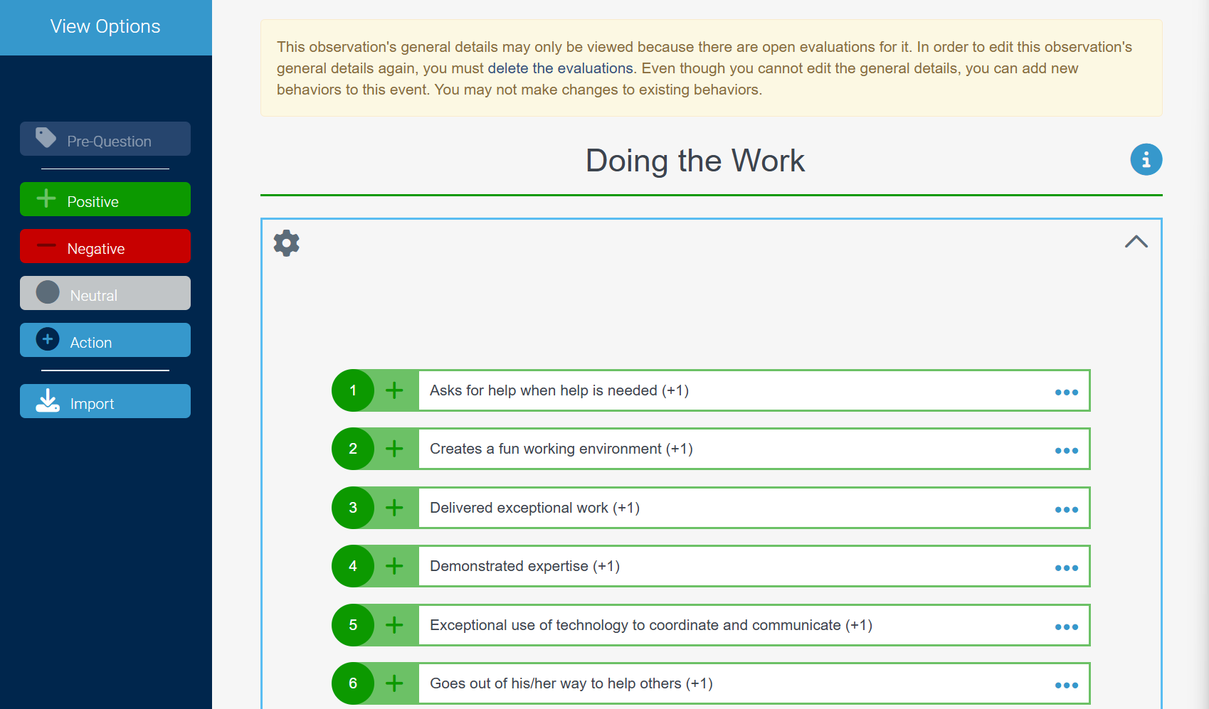 Define and edit the exact behaviors you want tracked. Customize observation frameworks down to the action level ensuring users capture the most relevant team and individual dynamics in real time. Move beyond simple event logging by tracking both behaviors and resulting actions, creating a richer dataset for performance analysis and decision making.
