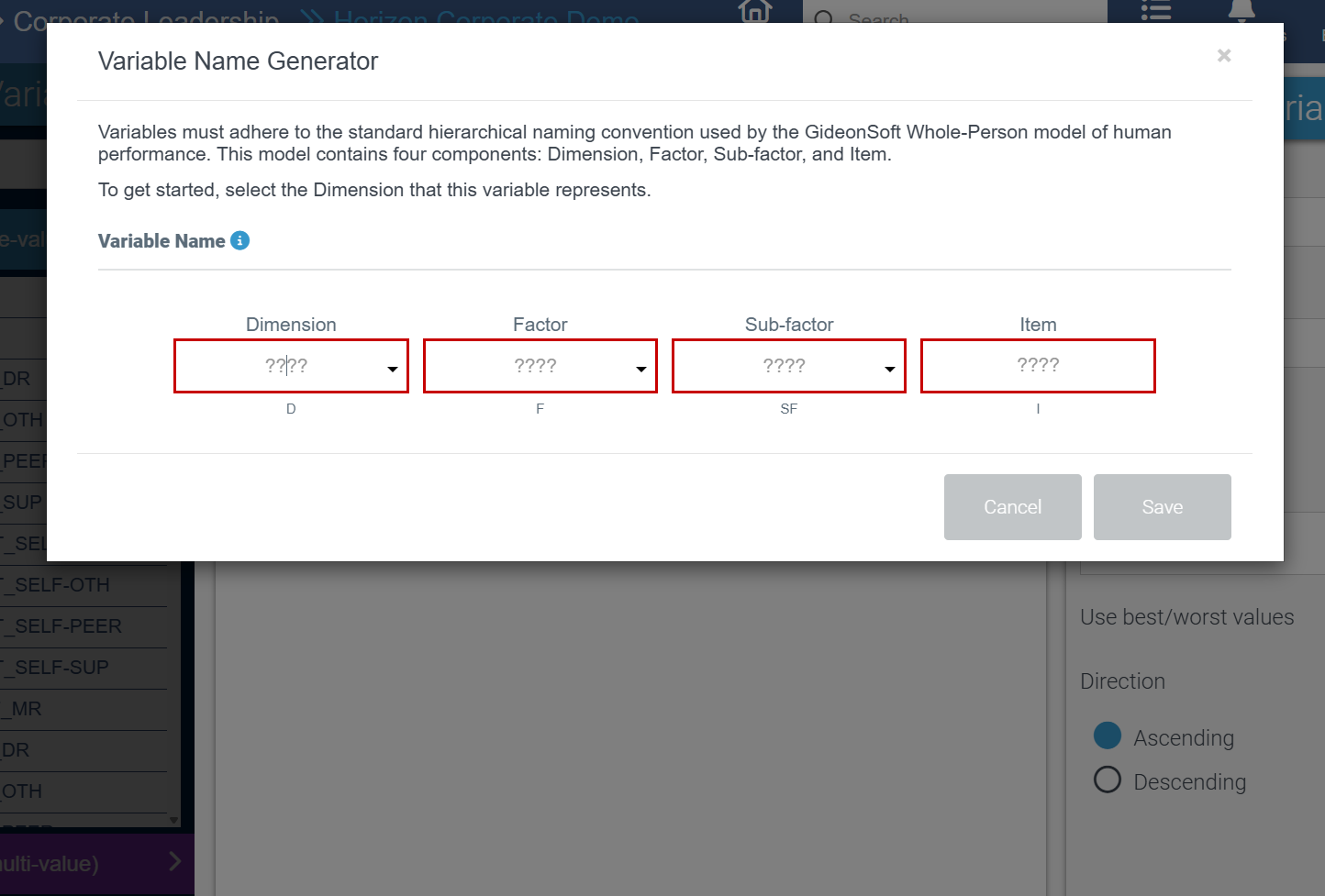GideonSoft applies a standardized variable naming convention aligned with your measurement model. This ensures consistency across data structures, enabling more reliable analysis and streamlined reporting.