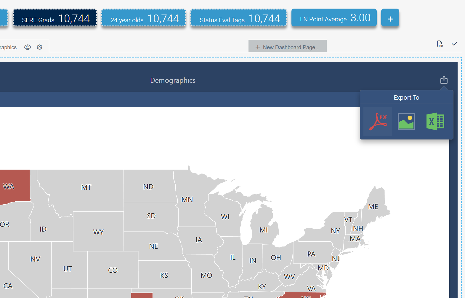 Export dashboards in multiple formats, including PDF for reports, images for presentations, or CSV files for deeper analysis. This ensures insights can move fluidly between operational use and executive review.